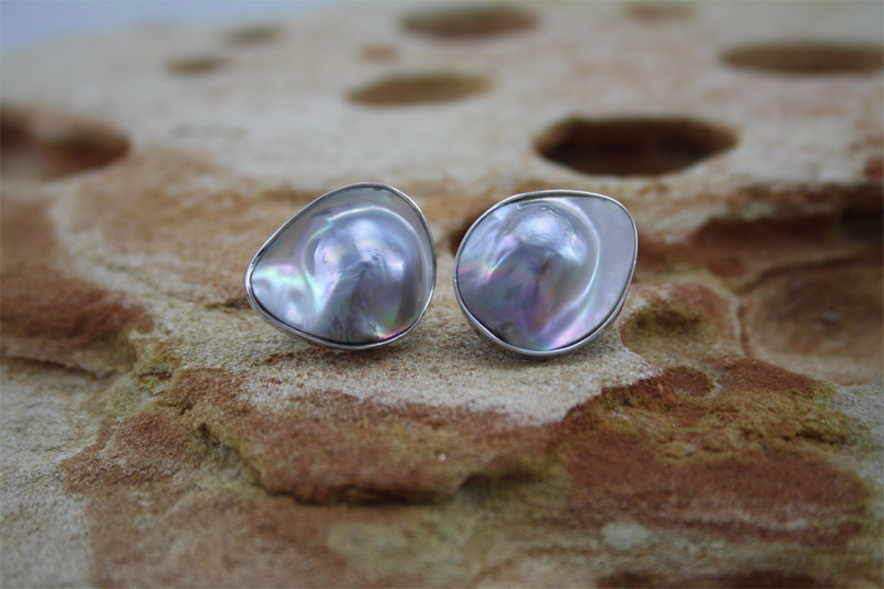 Product Code SKU5047. Sterling Silver mabe ER clip on 22mm x 17mm. Mabe pearls are seeded half pearls using the same type of shell as is used for growing South Sea and Keshi Pearls. These pearls are formed around half sphere seeds attached to the inside of the shell which is then returned to the ocean to allow the pearl animal the opportunity to grow a coating of nacre over the seed which forms the Mabe Pearl. Beautifully presented in a gift box.