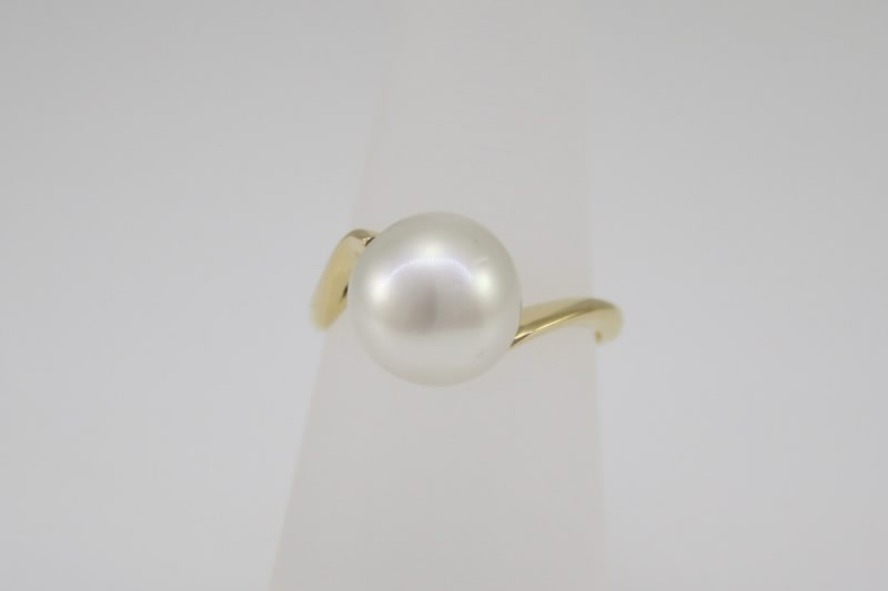 Product Code SKU2002. 10mm 18ct Yellow Gold South Sea Pearl Ring Size N. South Sea Pearls come from pearl farms in tropical waters in the southern hemisphere. Generally the pearls grown in this area range in size from 9mm to 18mm (sometimes larger) The culturing of pearls has been active in Australia since the 1950's. The process for culturing pearls requires a technician to implant a seed in the animal which then is coated in a secreted nacre by the animal. This is an ongoing process over a number of years. The depth of this nacre is what gives the South Sea Pearl its world renowned lustre. You will find a colour variation which can be a sign of the water temperature and the food source for the animal in any particular area. Beautifully presented in a gift box.