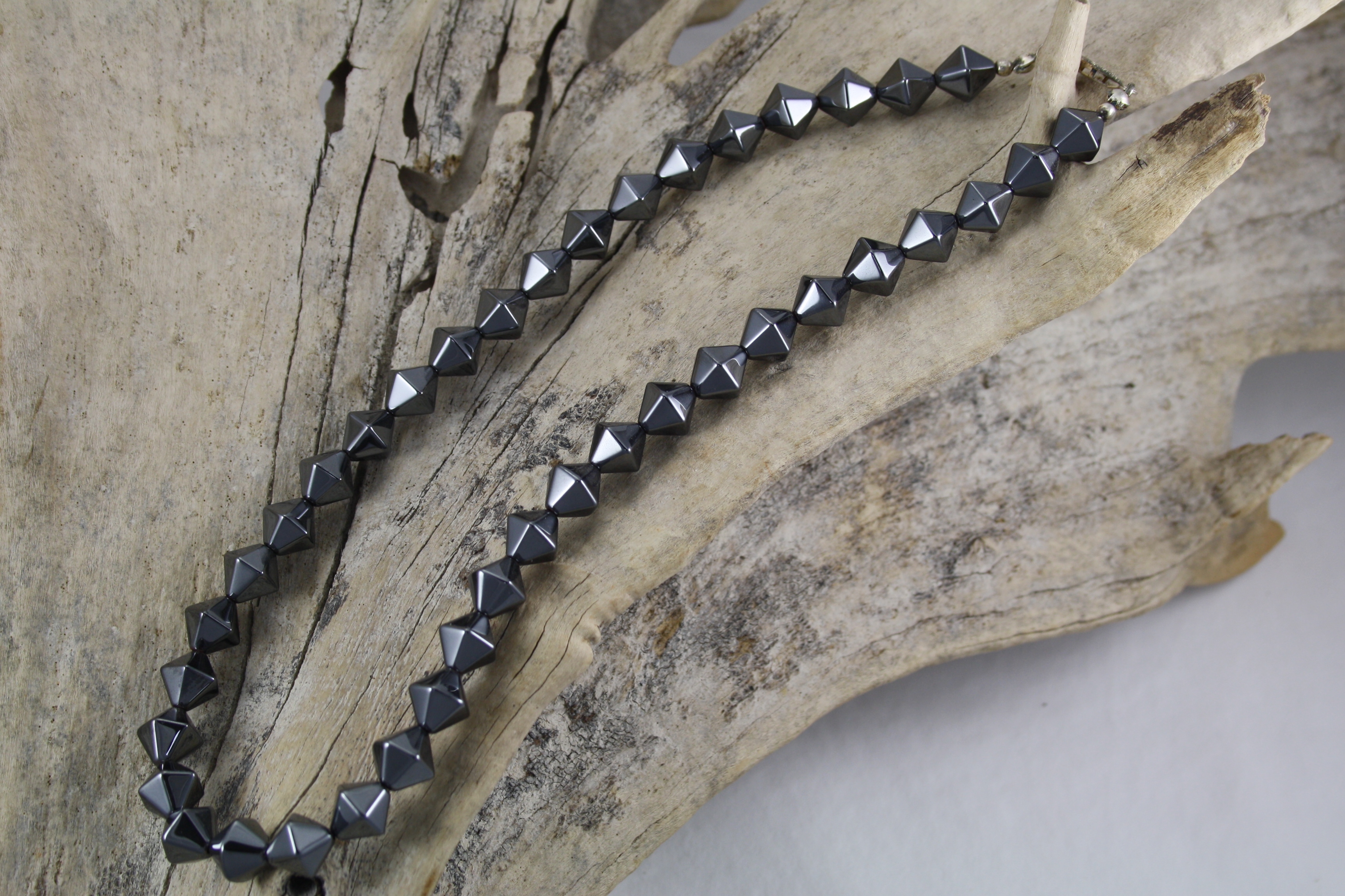 In more recent times Hematite has been used in jewellery. With a 5.5-6.5 hardness that allows for a beautiful polish, this stone makes magnificent beads that compliment many complexions.