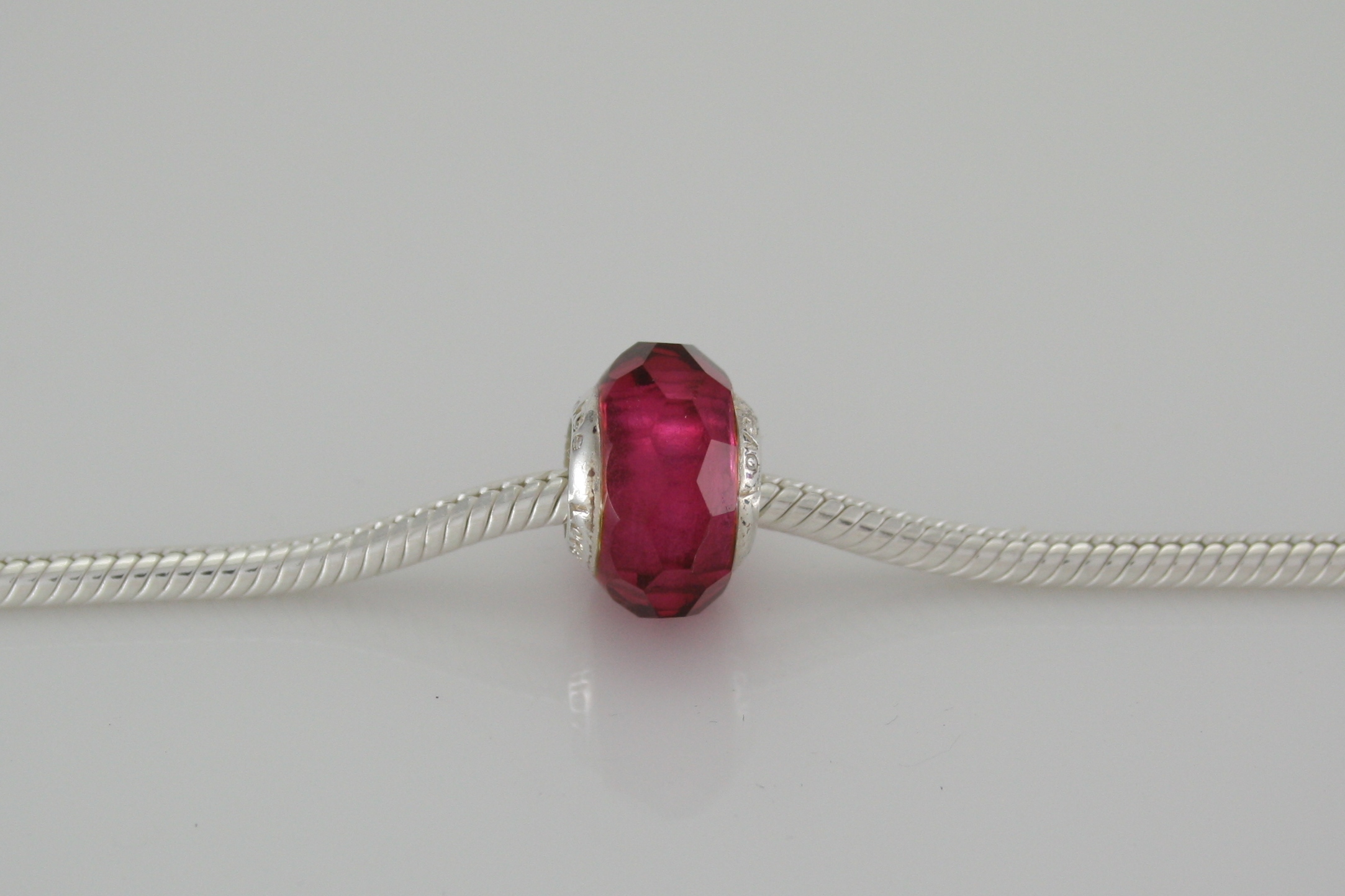 Sterling Silver hot pink Murano glass faceted bead.