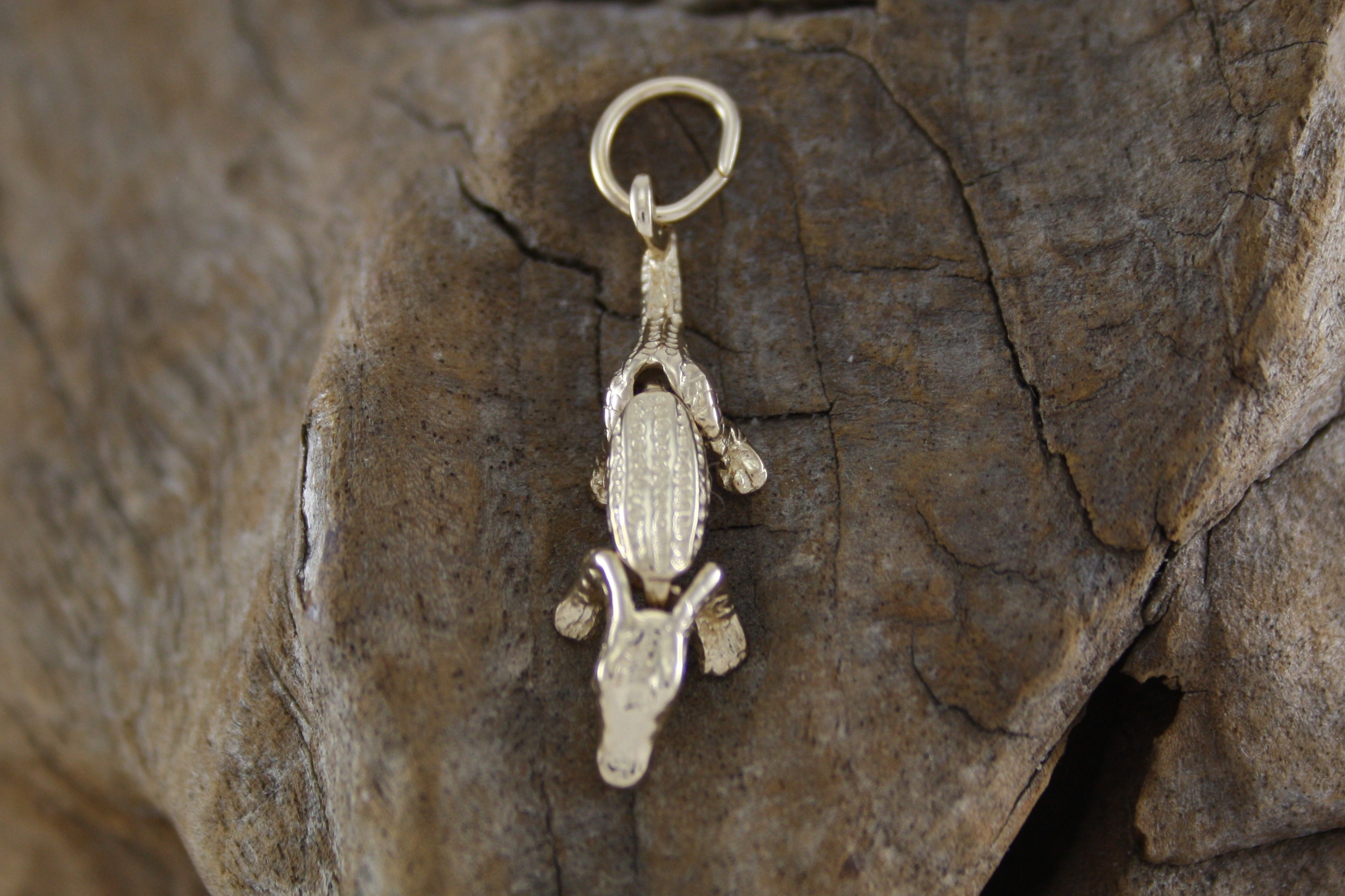 9CT Solid Yellow Gold moving crocodile charm. Approximate size 25.0mm x 6.0mm.