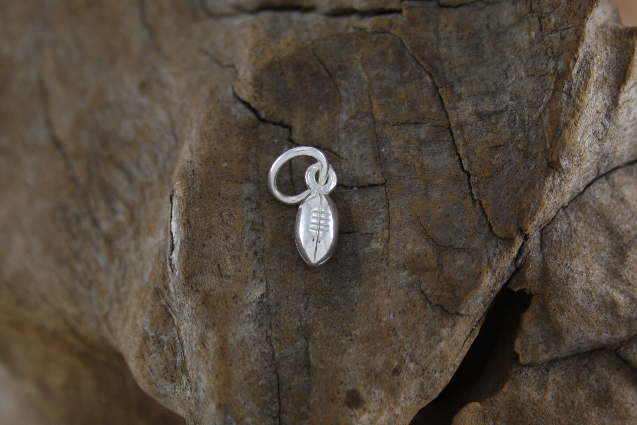 Sterling Silver football charm. Approximate size 8.0mm x 5.0mm.