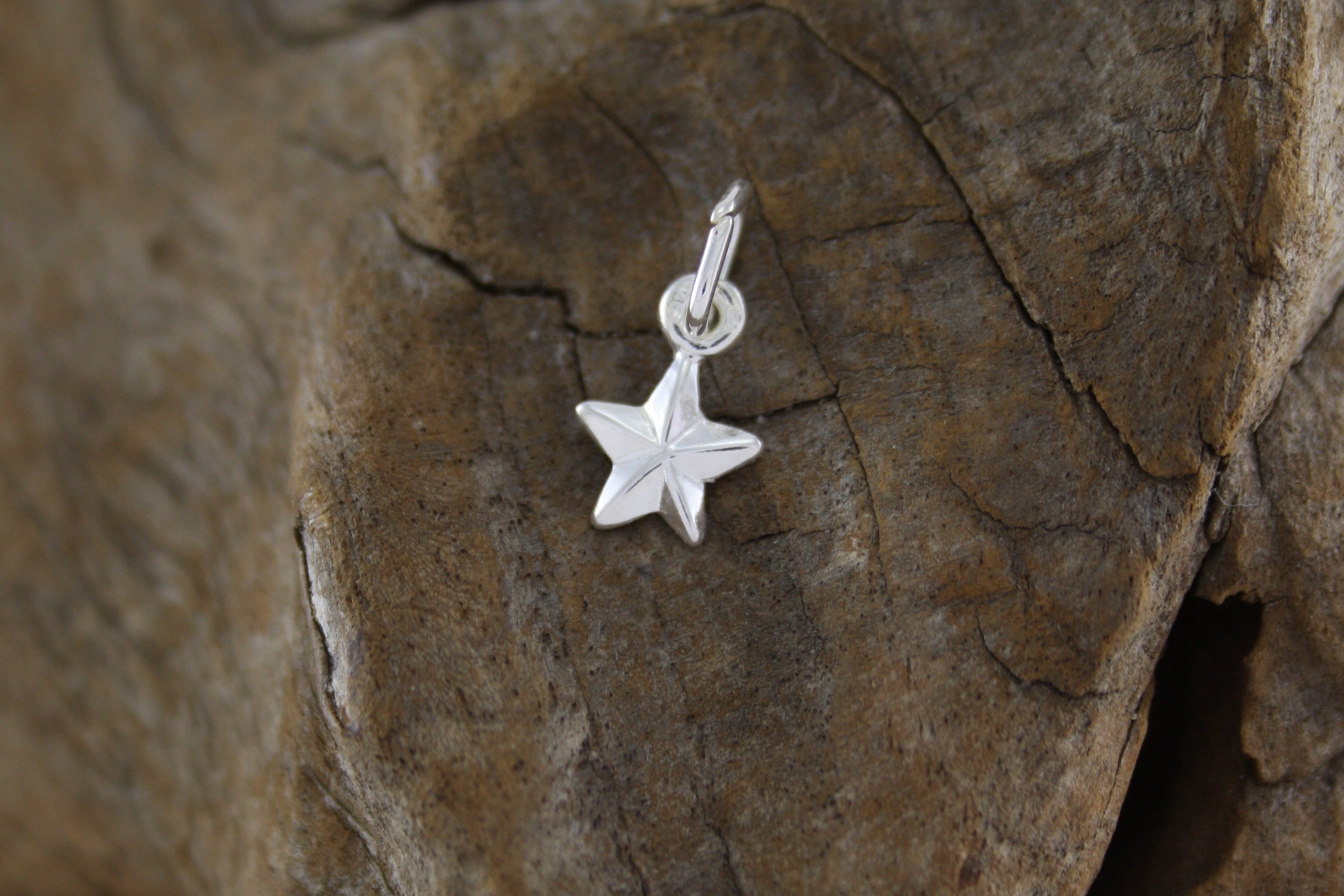 Sterling Silver Star charm. Approximate size 7.0mm x 7.0mm.