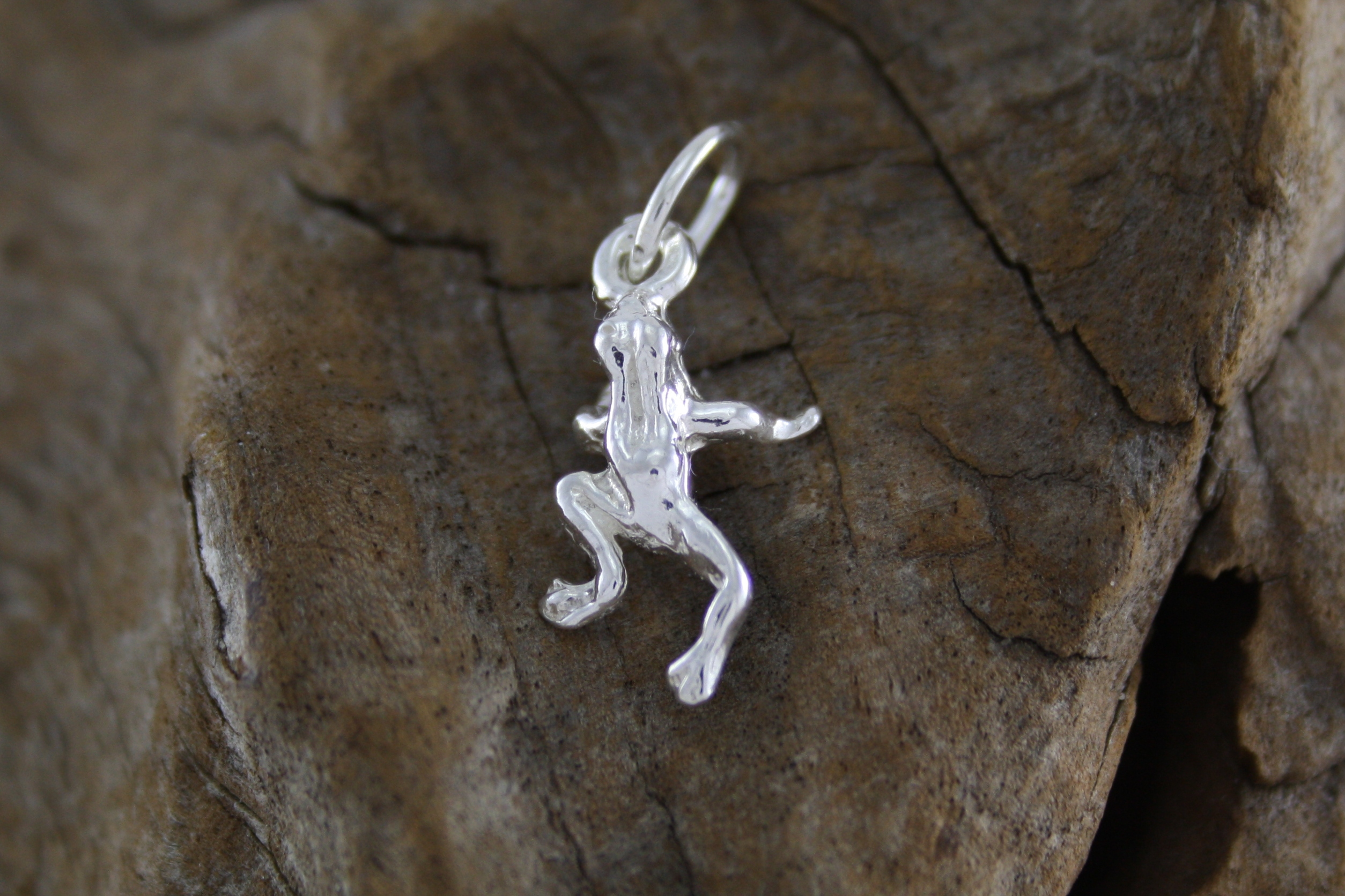 Sterling Silver Frog charm. Approximate size 14.0mm x 6.0mm.
