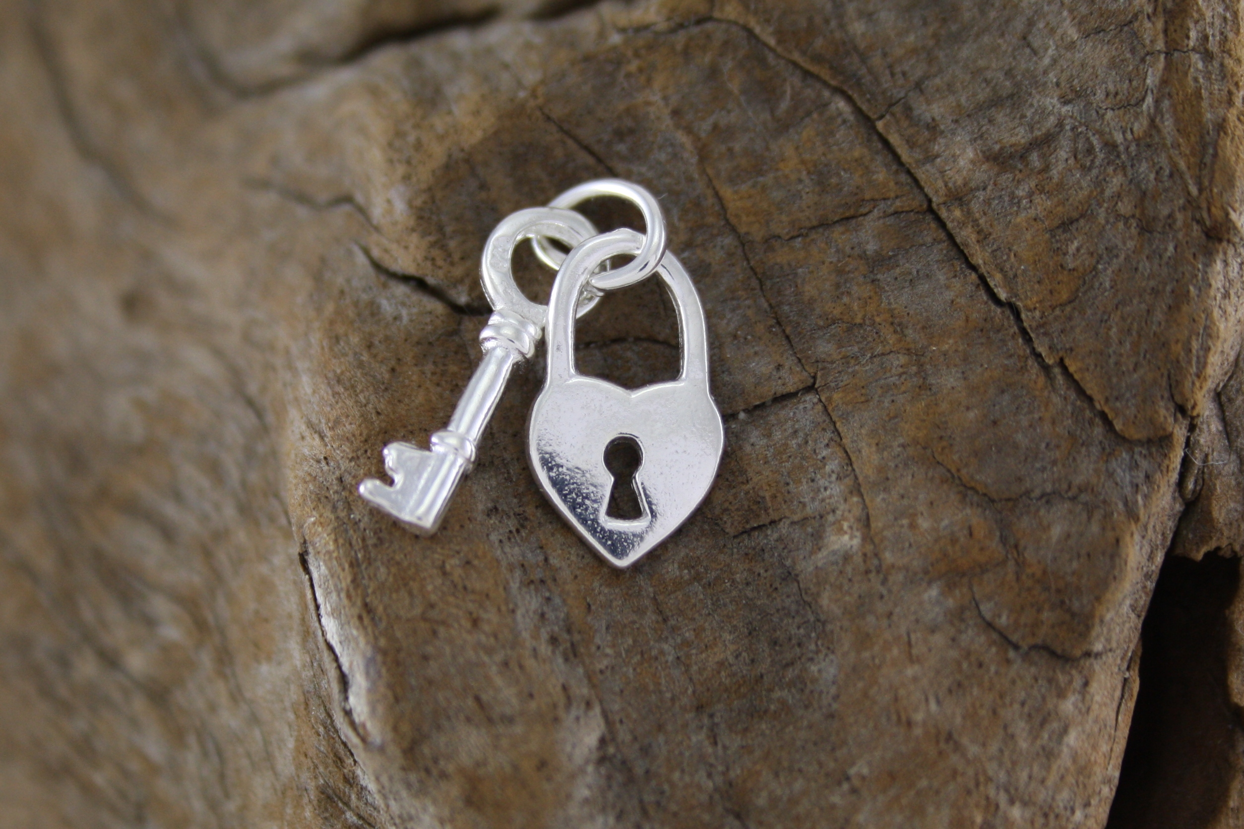 Sterling Silver Padlock & Key charm. Approximate size 15.0mm x 5.0mm.