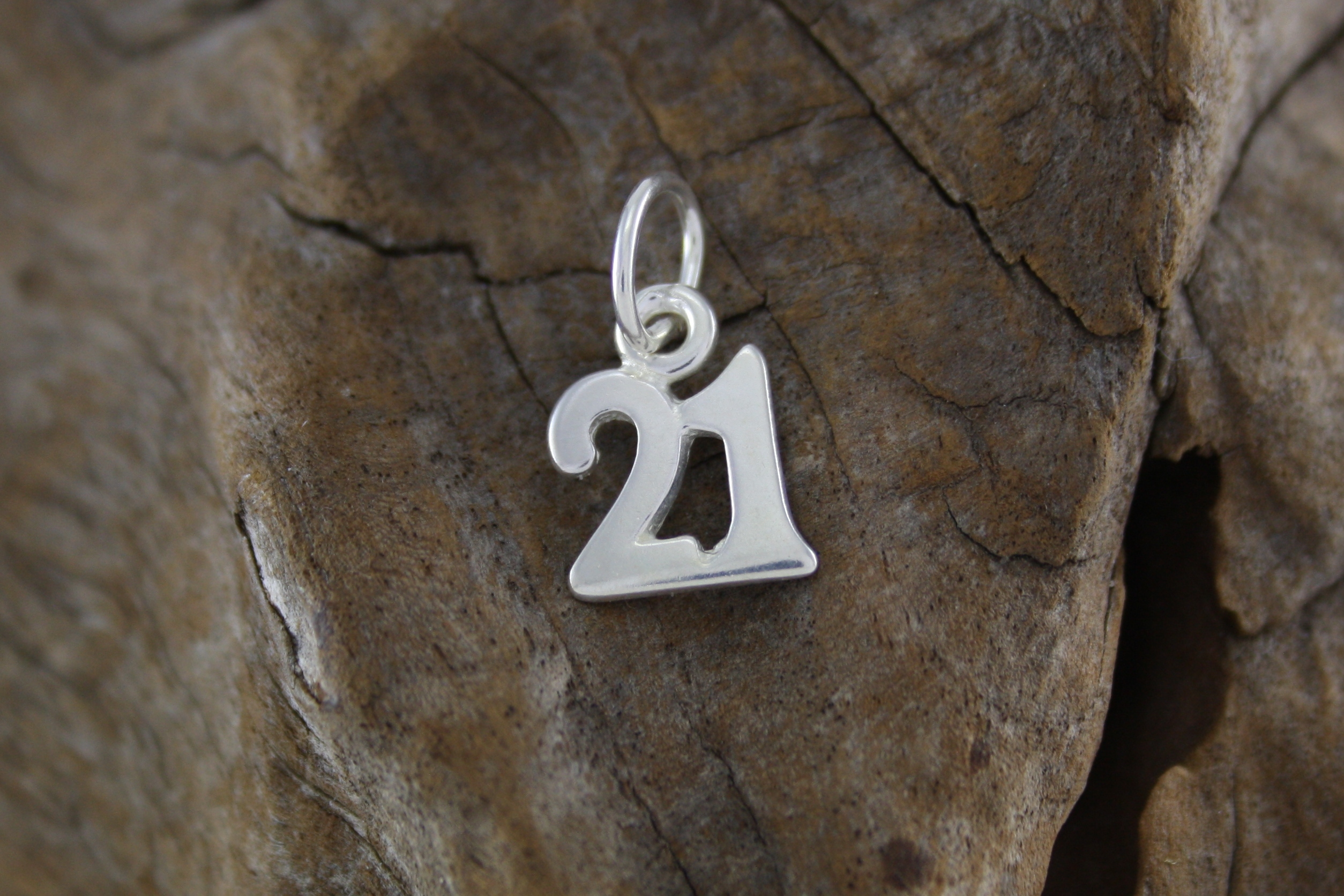 Sterling Silver 21 charm. Approximate size 9.0mm x 8.0mm