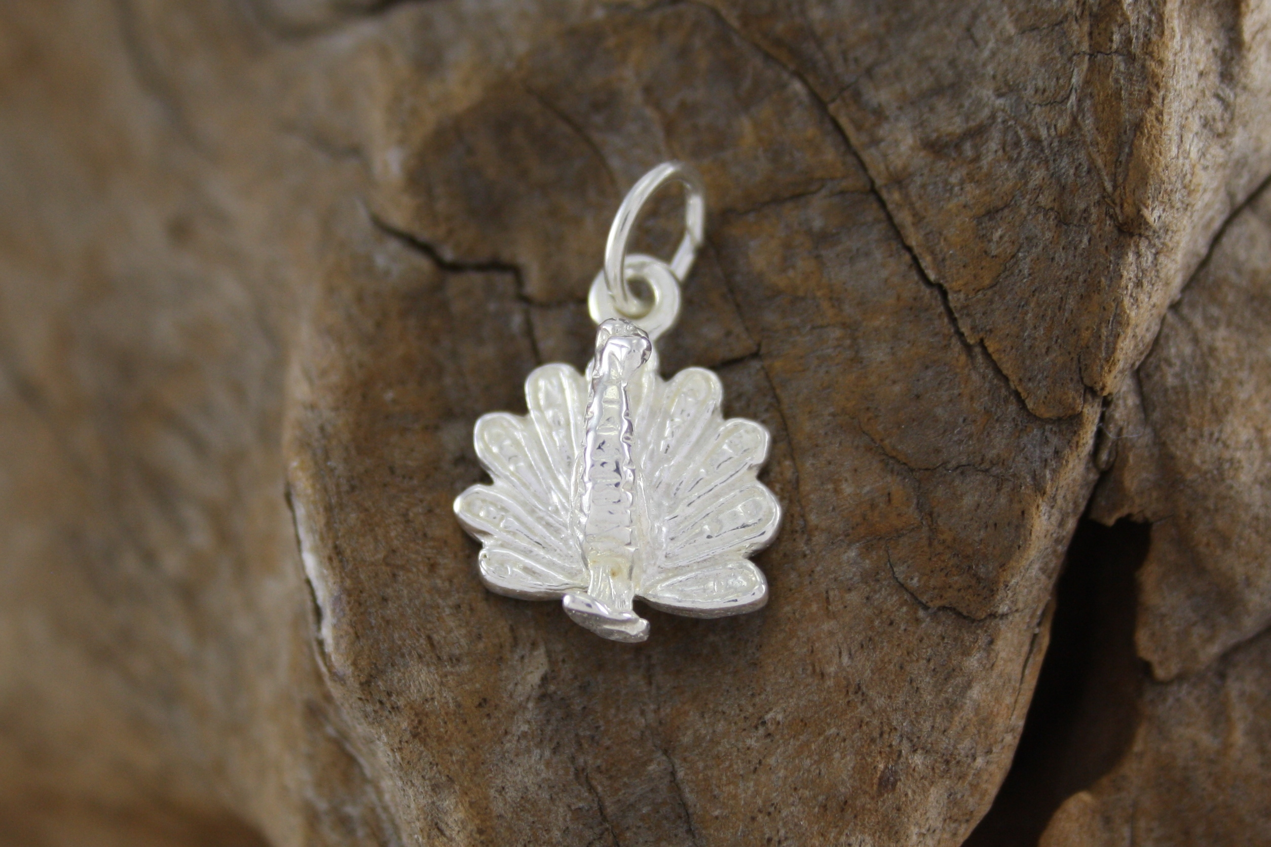 Sterling Silver Peacock charm. Approximate size 13.0mm x 13.0mm