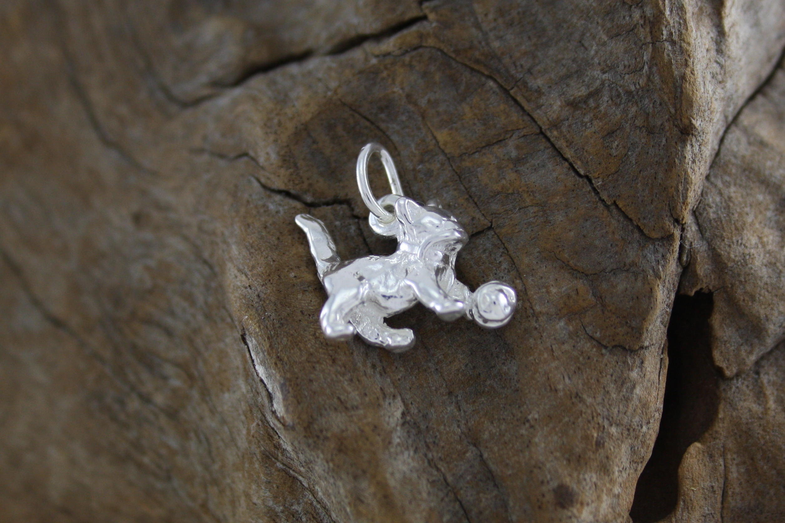 Sterling Silver Cat & ball charm. Approximate size 15.0mm x 11.0mm