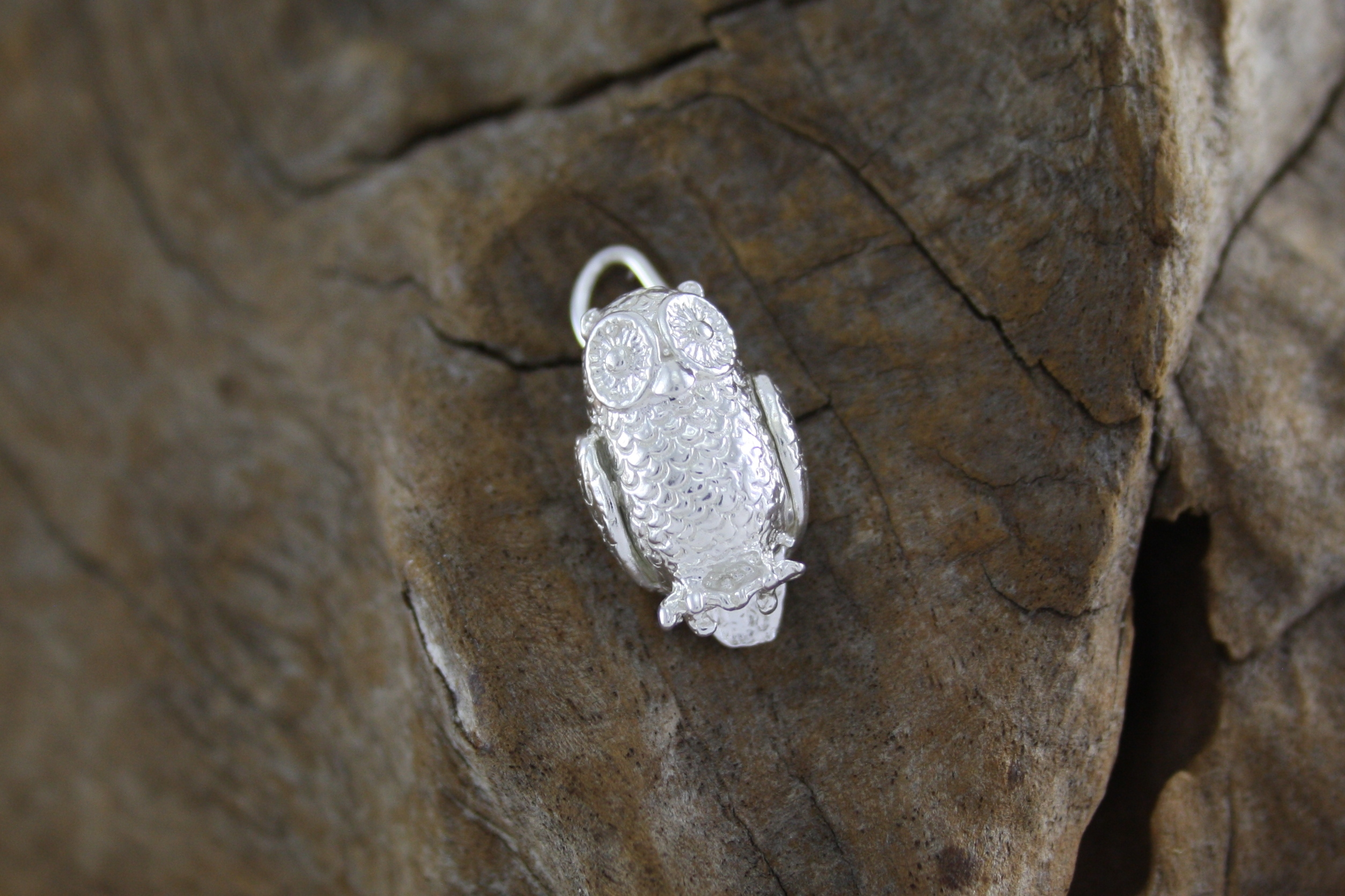 Sterling Silver Owl charm. Approximate size 16.0mm x 10.0mm