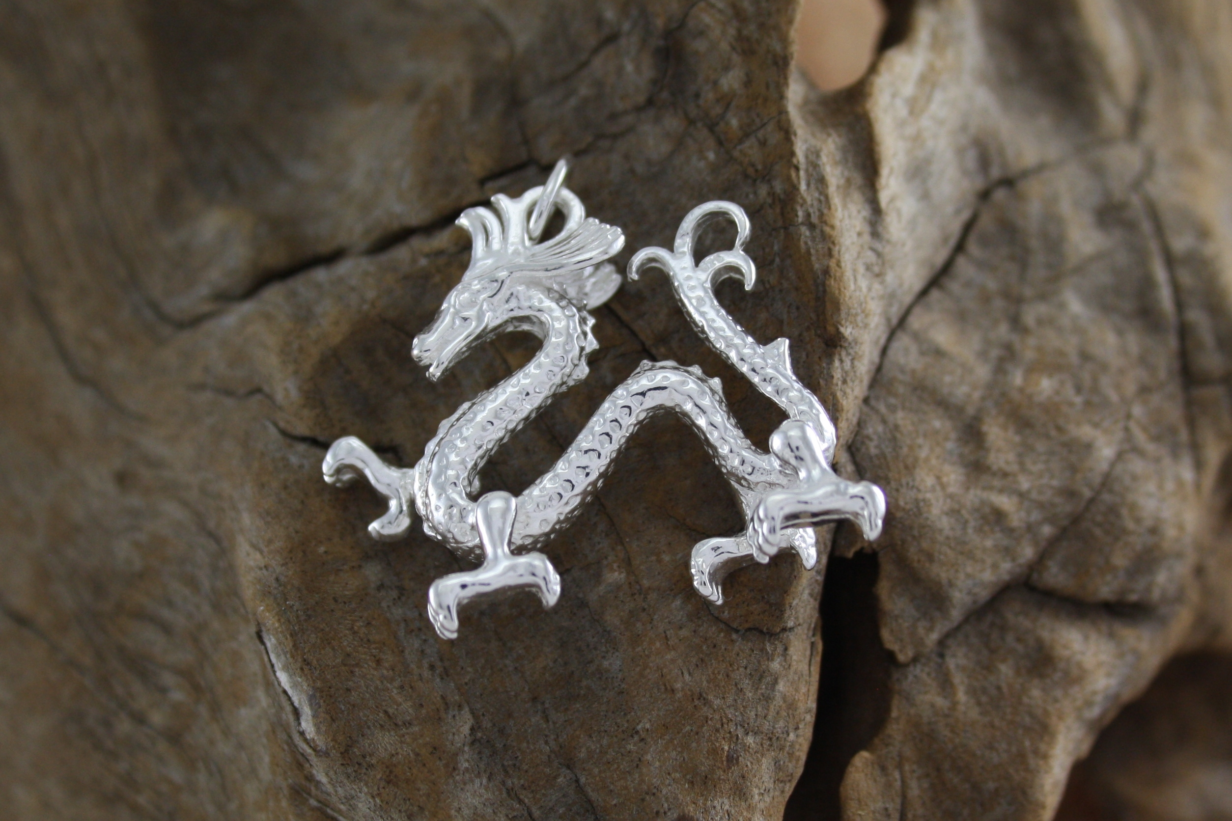 Sterling Silver Dragon charm. Approximate size 33.0mm x 25.0mm