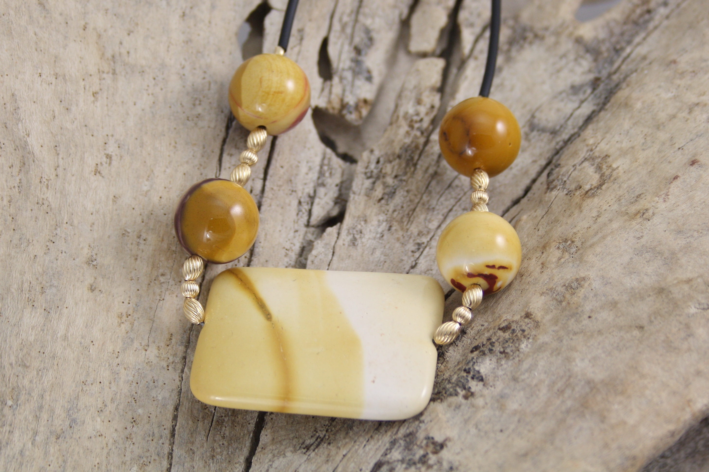 Mookaite has an interesting origin. The area in which it is found was once part of the ocean that had long since receded, leaving an inland sea. As this inland sea evaporated, billions of tiny organisms known as Radiolarian were left behind in beds upto several metres thick. These calcareous skeletal remains absorbed iron rich minerals and silica from the sea and underground vents and springs, to form Windalia Radiolarite, a hard, fine grain chert, covering an area of thousands of square kilometres. The higher concentrations of iron and silica at the Mooka Station deposits, has produced this unique example of Radiolarite we know as Mookaite. This formation is from the Early Cretaceous period, or around 120 million years oldMookaite is fashioned into many items such as jewellery, carvings and ornaments.