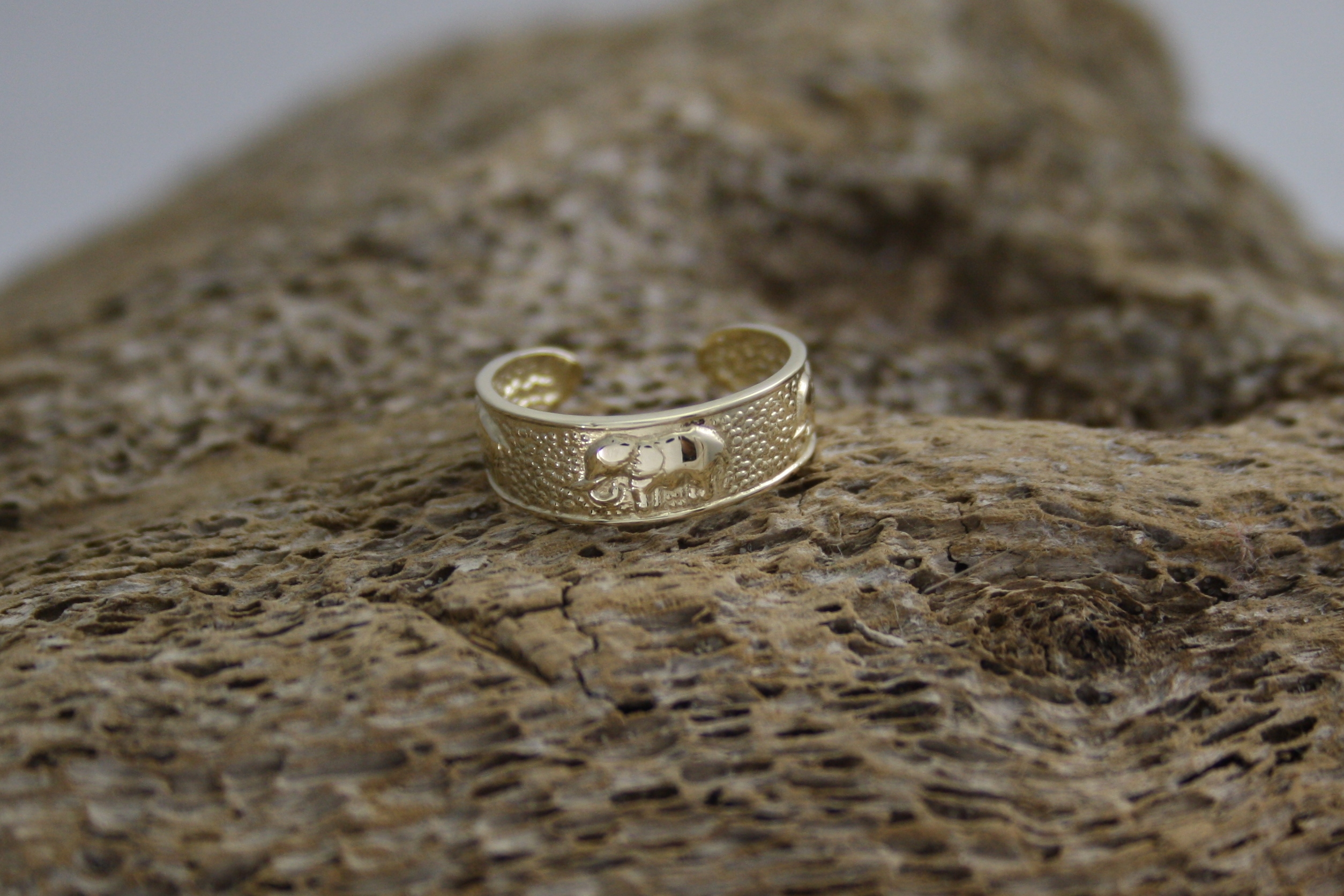 9ct YG Elephant toe ring. Toe ring is designed to have sufficient flexibility to fit most toes (usually the second toe). It is important to understand that the correct fit should be achieved through slight adjustment of the ring diameter. Excessive bending or stretching will cause damage. Beautifully presented and gift boxed.