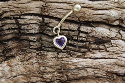 (15054) 9ct YG Amethyst Heart swing belly bar
