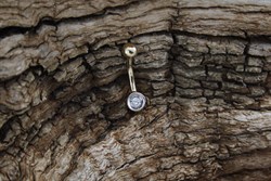 (19015) 9ct YG Amethyst & Diamond flower belly bar