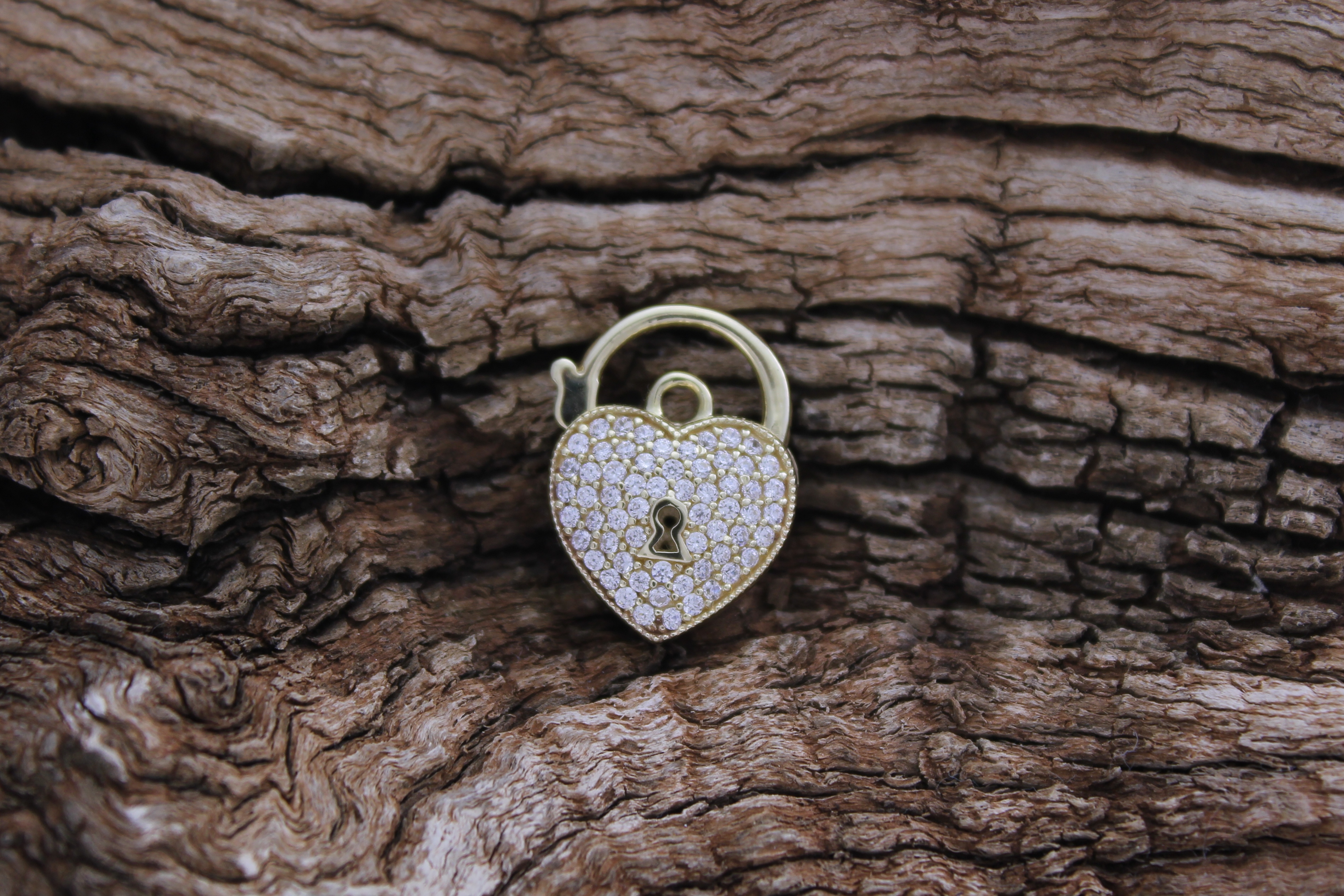 9ct Yellow Gold cubic zirconia heart padlock