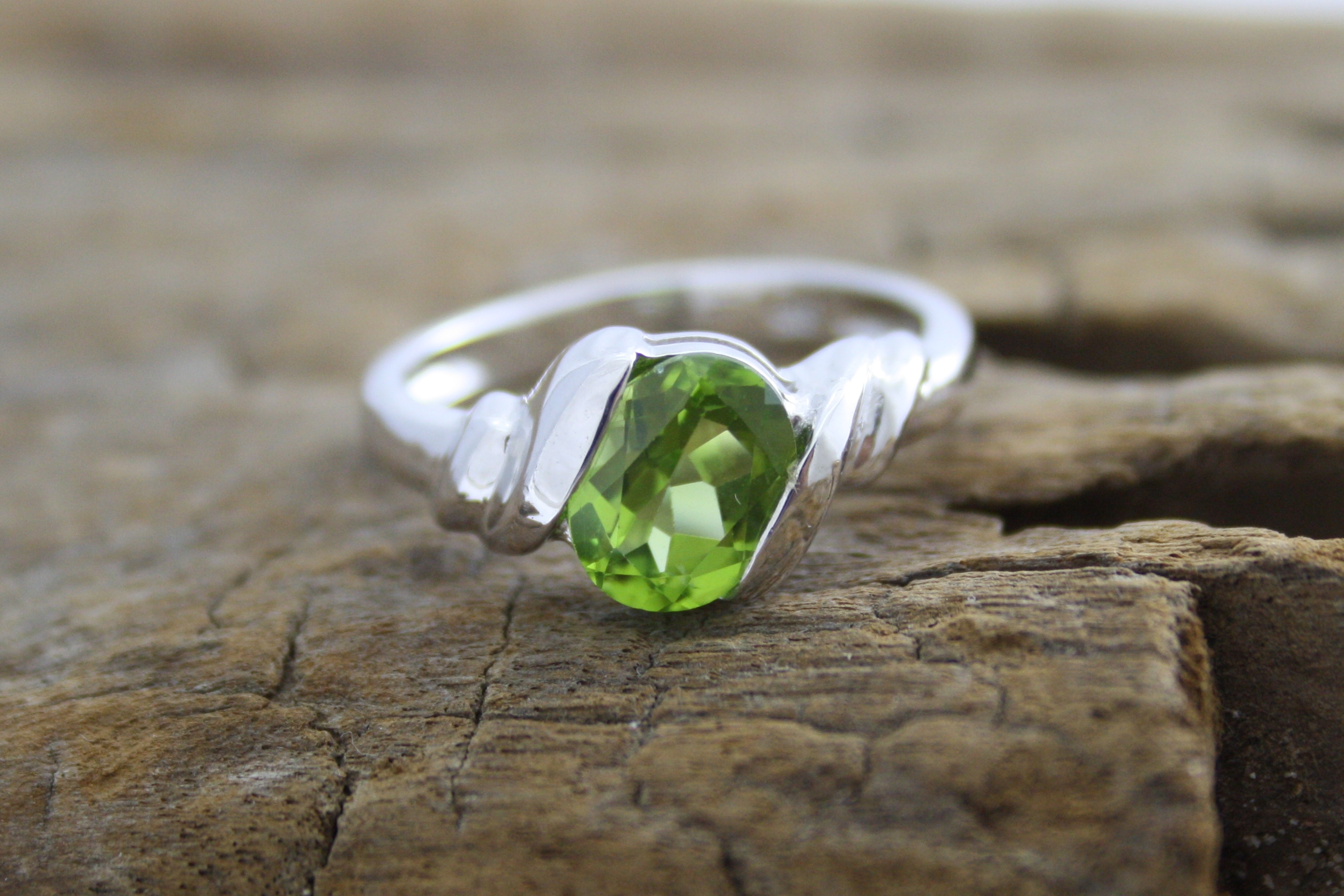 Sterling Silver Peridot ring rhodium plated. Size 'O'. Beautifully presented and gift boxed.