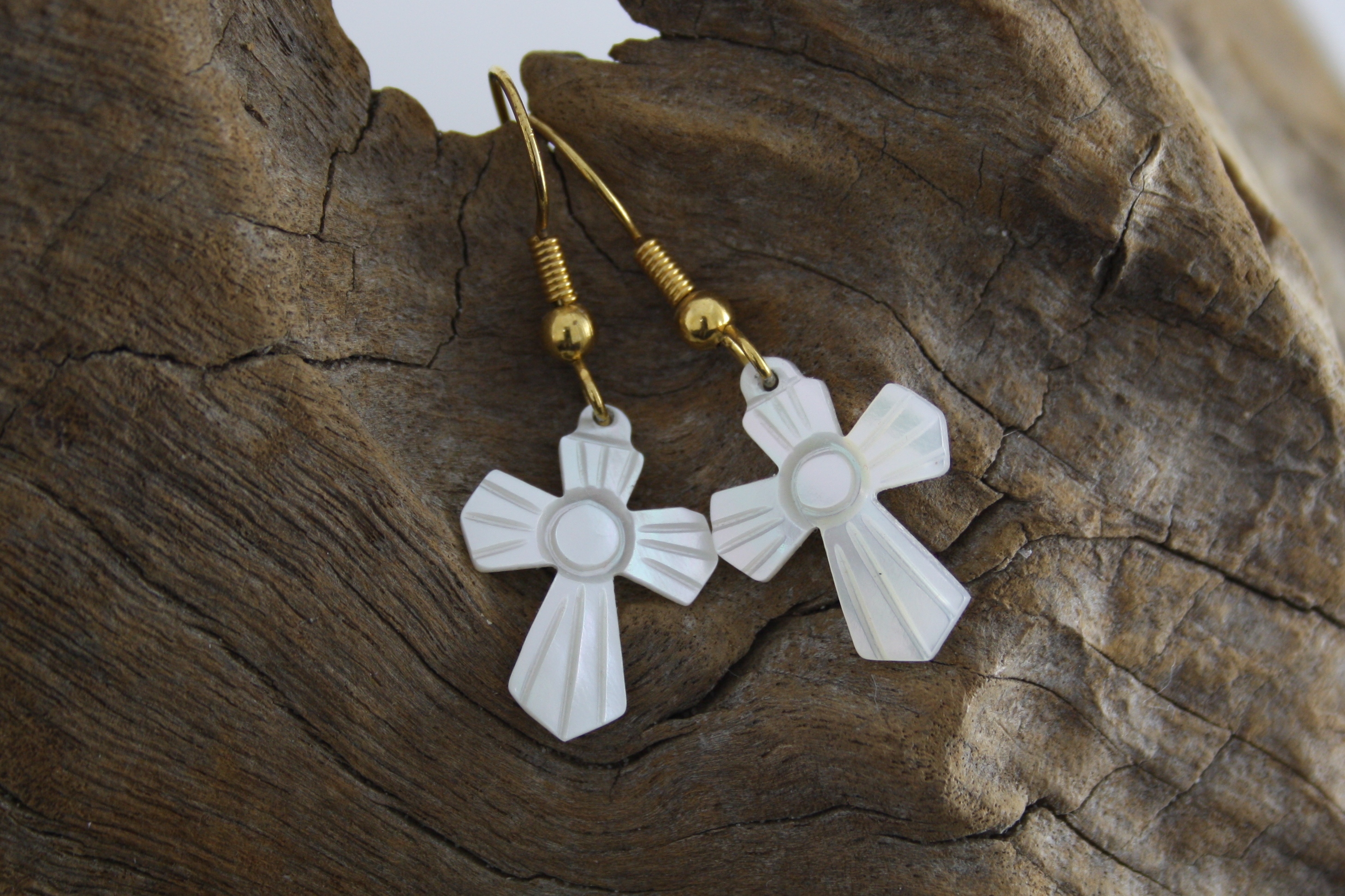 Product Code SKU20002. Mother of Pearl earrings, gold plated hooks. Approximate size of mother of pearl 20mm x 14mm.