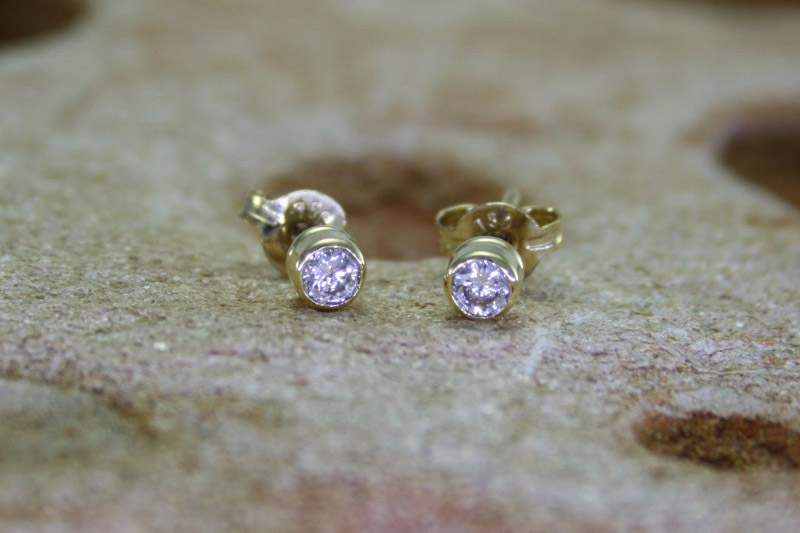 Product Code SKU6042.18ct Yellow Gold Diamond (Brilliant Cut) Studs Bezel set diamonds = 10pts.