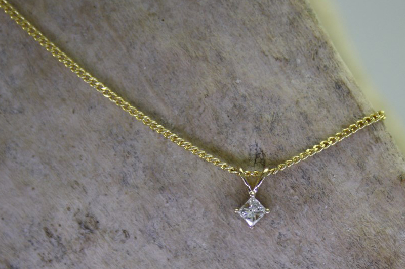 Product Code SKU9030. 9ct Yellow Gold Princess cut Diamond Pendant.