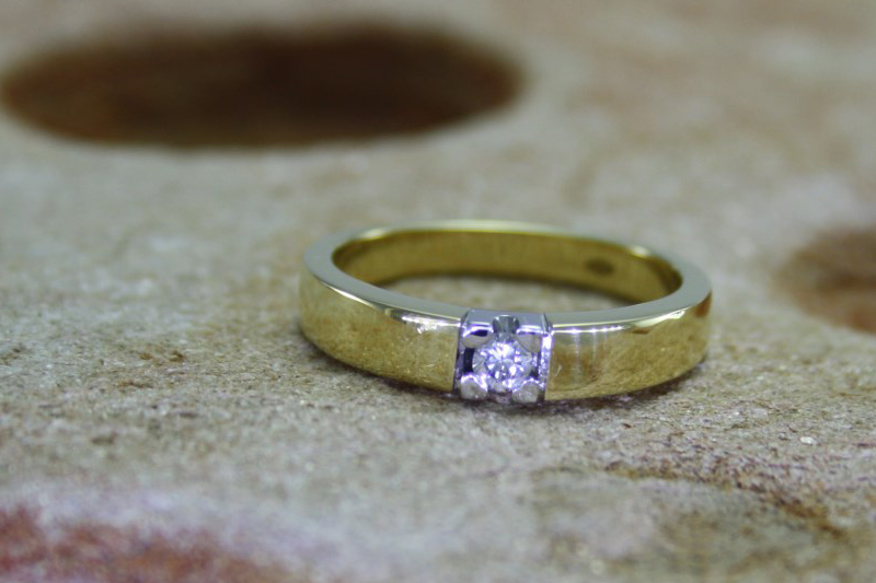 Product Code SKU14001.18ct Yellow Gold diamond ring Size 'N' Solitaire Brilliant Cut 9pt diamond C SI.